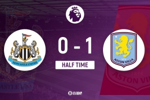 傷停補(bǔ)時(shí)4分鐘。上半場(chǎng)比賽結(jié)束,紐卡斯?fàn)柭?lián)0-1阿斯頓維拉。