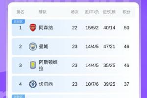 最新英超積分榜: