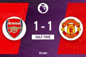 半場結束,阿森納1-1曼聯(lián)。