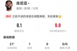 體育資訊1月26日訊 曼聯(lián)在本輪英超焦點(diǎn)戰(zhàn)3-2力克阿森納,庫尼亞本場數(shù)據(jù)如下: