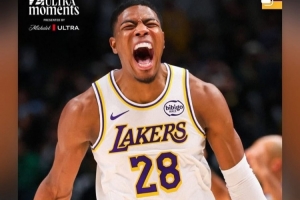 詹姆斯轉發(fā)了八村塁在昨日客場擊敗獨行俠比賽中命中關鍵三分的怒吼慶祝照,并寫道:“大心臟黑武士????”