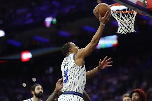 體育資訊4月18日訊 附加賽生死戰(zhàn)上半場(chǎng),魔術(shù)68-37領(lǐng)先黃蜂31分。