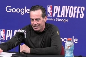 體育資訊4月19日訊 NBA季后賽首輪G1,騎士主場(chǎng)126-113戰(zhàn)勝猛龍,總比分1-0,賽后阿特金森接受采訪。