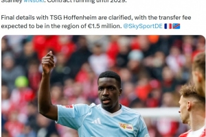 報道稱柏林聯(lián)合與霍芬海姆的交易最終細節(jié)已經(jīng)敲定,轉(zhuǎn)會費預(yù)計約為150萬歐元。恩索基是一名27歲后衛(wèi),本賽季在德甲12次出場貢獻1球2助攻。
