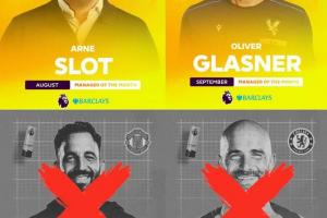 此前獲得10月英超月最佳主教練的阿莫林,與11月英超月最佳主教練馬雷斯卡均已下課。