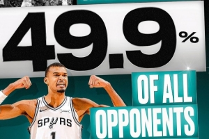 維克托·文班亞馬短暫的職業(yè)生涯至今,他已經(jīng)和547名對(duì)手同場競技過,而其中有273 人(占比49.9%)都有被他至少封蓋過一次。