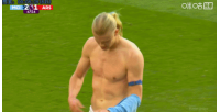 比賽第67分鐘,哈蘭德在拼搶中緊身衣被加布里埃爾扯出,隨后他脫下緊身衣直接送給了場(chǎng)邊的球迷。