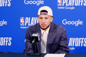 布克:是的,我的意思是,他去年的季后賽打得非常棒。我當(dāng)時(shí)密切關(guān)注了他的表現(xiàn),他在總決賽里打球,甚至在總決賽拿過(guò)40分。所以,他們隊(duì)里的每個(gè)人都是威脅。顯然亞歷山大是蛇頭,但他創(chuàng)造了很多機(jī)會(huì),讓他們有很大的空間去自由發(fā)揮。今晚我們對(duì)亞歷山大進(jìn)行了包夾,派了很多人去防他,但他還是能為隊(duì)友創(chuàng)造機(jī)會(huì)。