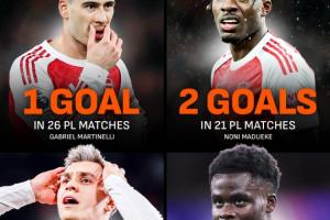 阿森納4名邊鋒總身價2.35億歐,本賽季英超合計打入14球。