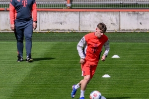 卡爾正在進(jìn)行有球訓(xùn)練。為了做好準(zhǔn)備,這位進(jìn)攻型中場在周一——球隊休息日,也是在奪冠后的第二天——在康復(fù)教練本杰明·索默的指導(dǎo)下,于塞貝納大街的訓(xùn)練基地進(jìn)行了一次額外的訓(xùn)練。上午10點03分,卡爾精神抖擻地踏上了球場。在30分鐘的訓(xùn)練中,這位德國國腳在訓(xùn)練中肌肉拉傷11天后,首次能夠進(jìn)行帶球練習(xí)。這位進(jìn)攻天才在恢復(fù)跑步兩天后,就已經(jīng)能夠繞著迷你錐進(jìn)行帶球訓(xùn)練了。隨后,他進(jìn)行了多次不同速度的跑步練習(xí),并進(jìn)行了穩(wěn)定性訓(xùn)練。