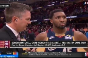 體育資訊4月21日訊 在今天結(jié)束的一場(chǎng)季后賽中,騎士以115-105戰(zhàn)勝猛龍。賽后,騎士球星多諾萬(wàn)·米切爾接受了媒體的采訪。以下是完整版采訪內(nèi)容。