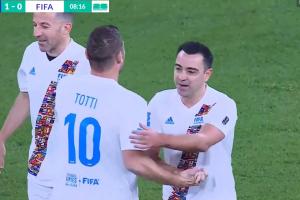 比賽中,托蒂與哈維兩人連線,最終哈維輕巧挑射破門(mén)。